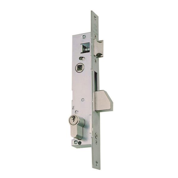 Golpe y llave. Picaporte reveresible. Cilindro niquelado 30x30 mm. Leva 13,02 mm. Cerradero inox. 2 embellecedores para cilindro. Acero inox. Entrada 20 mm.